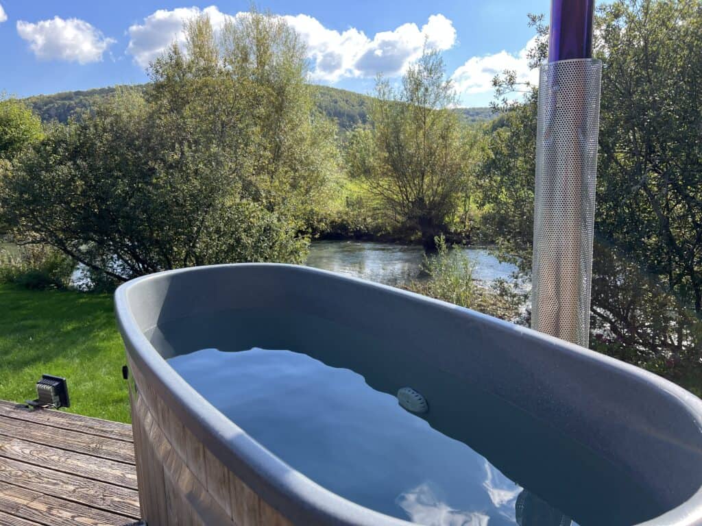 Unser umweltfreundliches/privates nordisches Bad wird mit Holzfeuer geheizt und mit Quellwasser gefüllt, um jede Neuankömmling in der ungewöhnlichen Unterkunft le Cube. Das Wasser wird zwischen allen Vermietungen vollständig erneuert, um einen vollständigen Komfort und eine optimale Hygiene zu gewährleisten. Ein Holzvorrat steht Ihnen zur Verfügung, so dass Sie während Ihres Aufenthalts mehrere Sitzungen nach Lust und Laune genießen und sich eigene unvergessliche Erinnerungen zu zweit in Ihrem privaten Spa. Das nordische Bad wird für Ihre Ankunft aufgeheizt. Wenn Sie einen Aufenthalt im Cube buchen, können Sie auch die Panoramasauna nutzen, die einen atemberaubenden Blick auf den Fluss und die Vegetation des Anwesens bietet. Es ist der ideale Ort für einen Cocooning-Moment zu zweit, um neue Energie zu tanken und die umliegende Natur zu bewundern. Eine magische Auszeit.