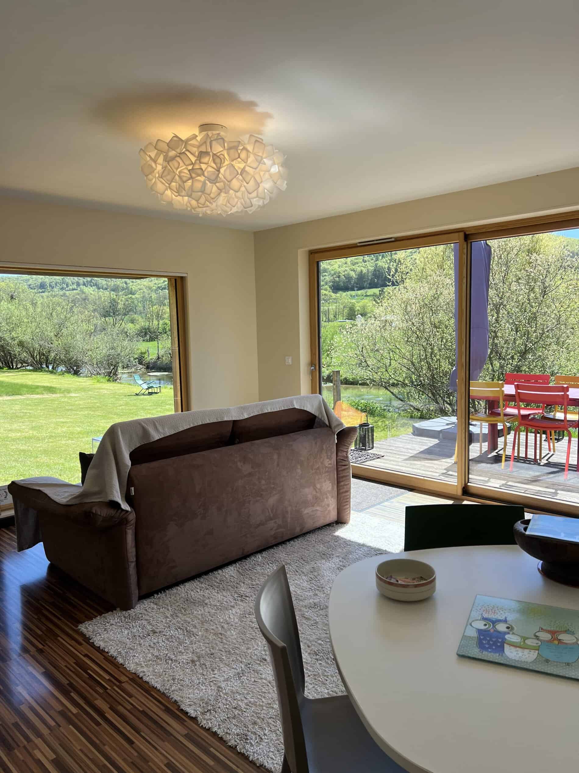 Genießen Sie Ihren Aufenthalt und entspannen Sie sich in unserer Panoramasauna, die einen friedlichen Blick auf den Fluss und die Natur bietet.
