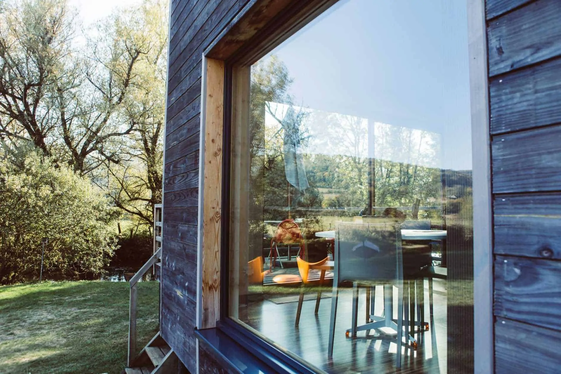 Genießen Sie Ihren Aufenthalt und entspannen Sie sich in unserer Panoramasauna, die einen friedlichen Blick auf den Fluss und die Natur bietet.